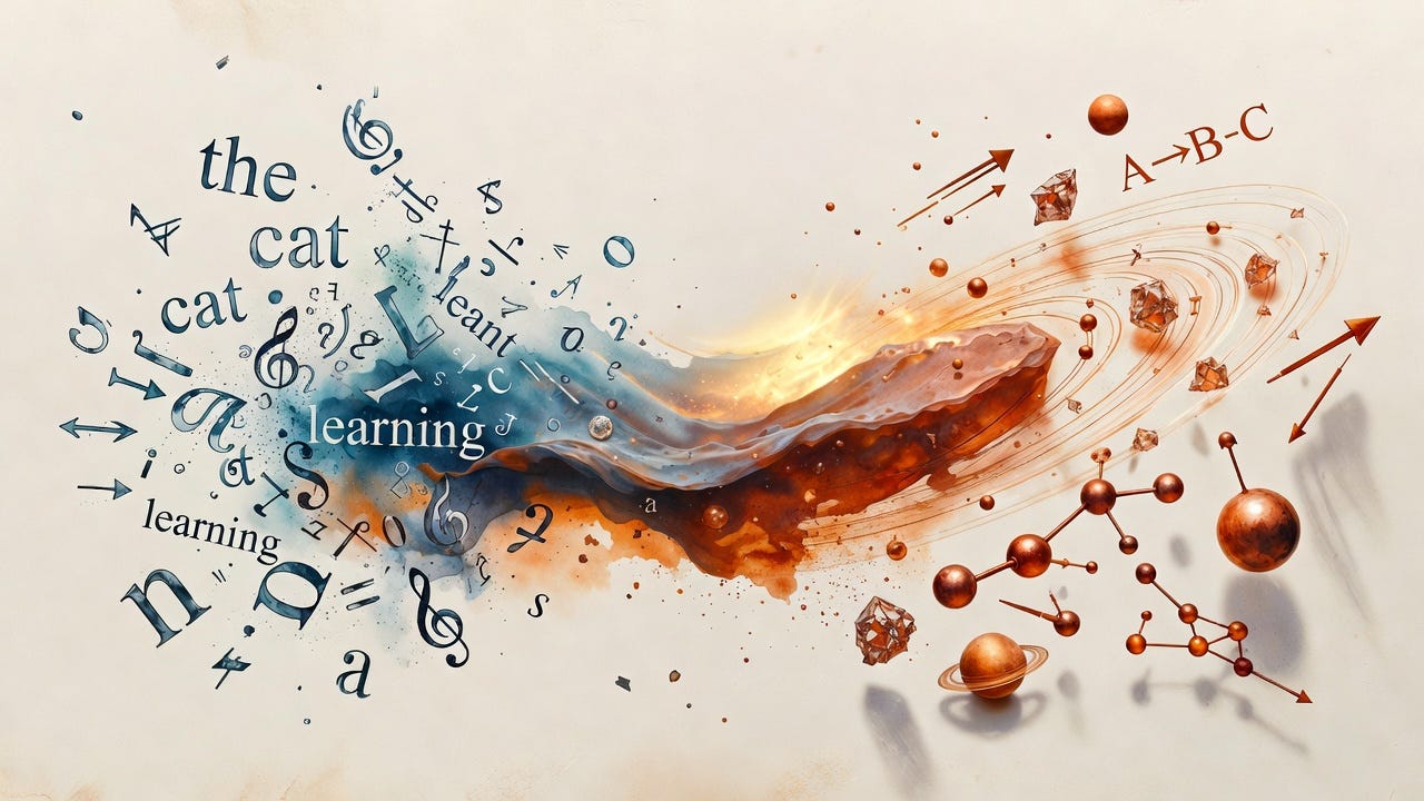 Language models learn by prediction. Given a sequence of words, they predict what comes next. This is remarkably powerful—as earlier chapters have shown, prediction drives compression, and compression drives understanding. But the understanding is grounded in language, not in the world that language describes.